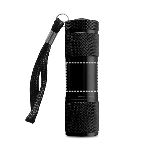 Taschenlampe aus Aluminium mit 9-LEDs (35 Lumen) und einer Halteschlaufe. Inklusive 3 AAA-Batterien. Geliefert in einer Schachtel. ø26 x 90 mm | Schachtel: 38 x 38 x 100 mm