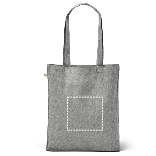 Tragetasche aus recycelter Baumwolle (70%), polyester (30% rPET) (140 g/m²) mit 60 cm langen Henkeln. Recycelte Baumwolle ist ungefärbt. Das Rohmaterial wird in seiner ursprünglichen Form und Farbe verwendet, ohne dass Chemikalien zum Färben oder Bleichen eingesetzt werden, was zu einer geringeren Umweltbelastung beiträgt. 380 x 420 mm